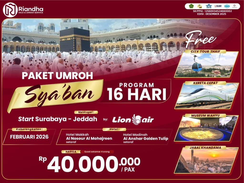 - Pelunasan Maksimal 1 Bulan Sebelum keberangkatan